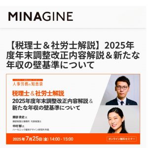 株式会社kubellパートナー(株式会社MINAGINE)様の「人事労務の知恵袋セミナー」に登壇させていただきました。